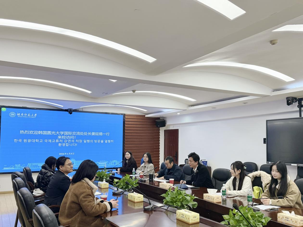 1月5日,韩国圆光大学国际交流处处长、孔子学院韩方院长姜延锡一行访问我校。周柯副处长对姜延锡处长一行表示热烈欢迎。他指出,由我校、湖南中医药大学及圆光大学三方共建的孔子学院已走过十一年历程,在汉语教学、人文交流与学术交流方面取得显著成果,这得益于三校长期以来的密切协作与共同努力。 双方围绕圆光大学孔子学院本年度的工作规划与发展重点进行了讨论,并对我校即将前往孔子学院任职的4名国际中文教师志愿者进行...