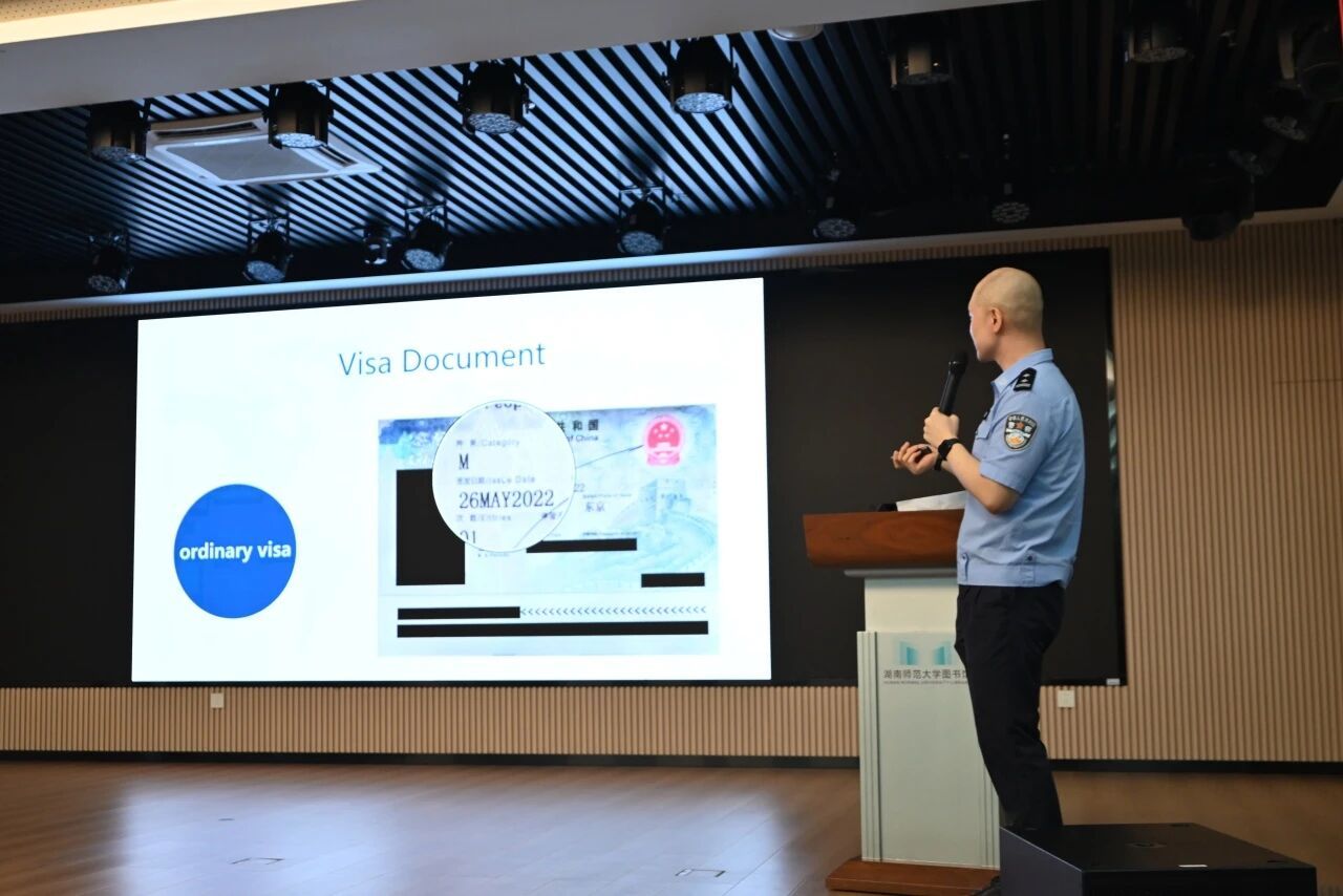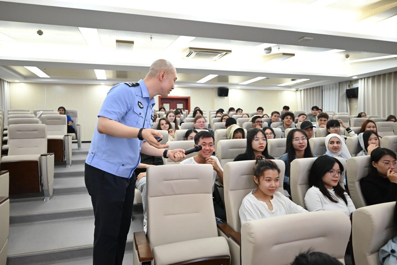 为帮助国际新生更快适应在中国的生活,活动特别邀请了长沙市公安局出入境管理支队刘成亮警官带来“开学第一课”。从涉外管理规定、宗教政策法规,到如何防范电信诈骗,刘警官用通俗易懂的语言进行了细致讲解,为国际新生的在华生活筑牢 “安全防线”。现场新生们认真聆听、不时记录,纷纷表示 “干货满满,让人很安心”。