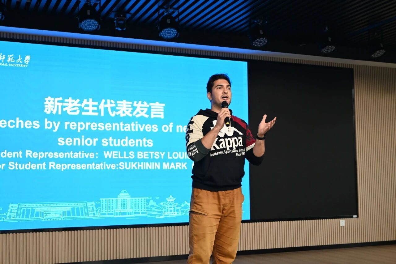 “在中国的两年,我不仅提升了专业能力,更爱上了这里的文化!” 在学生发言环节,俄罗斯籍老生代表SUKHININ MARK(苏伟杰)分享了自己的成长故事。他提到,通过参与学校组织的各种活动,自己不仅走遍了北京、西安、杭州等城市,更深刻感受到了中国传统文化的深厚底蕴与现代中国的蓬勃活力,“希望学弟学妹们也能大胆探索,在这里收获知识与友谊”。