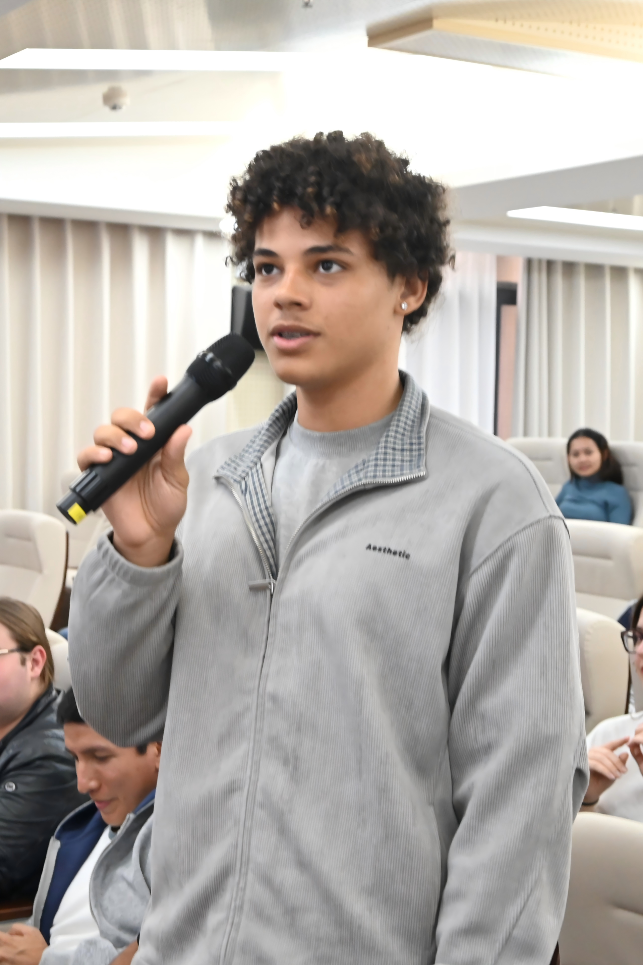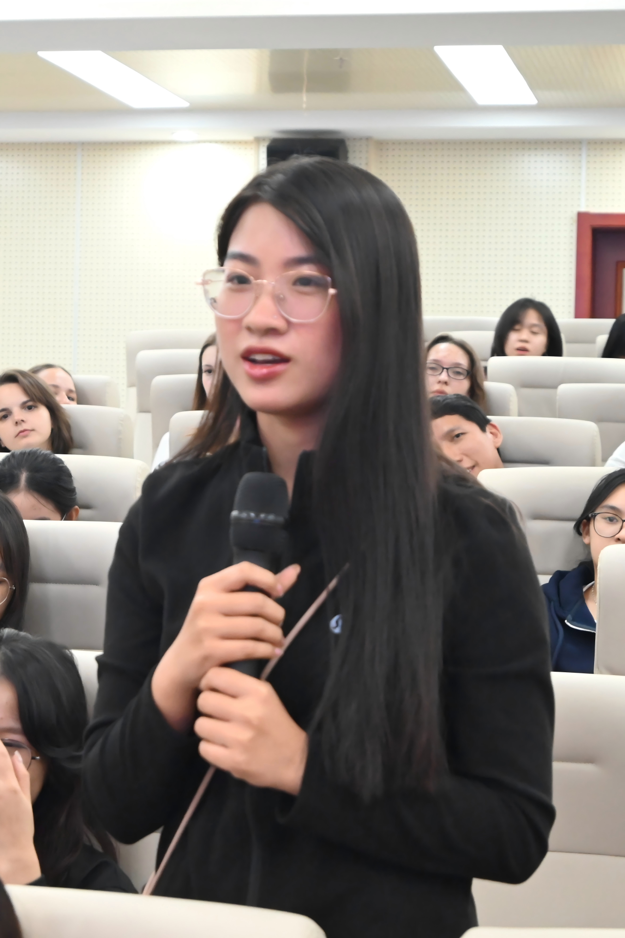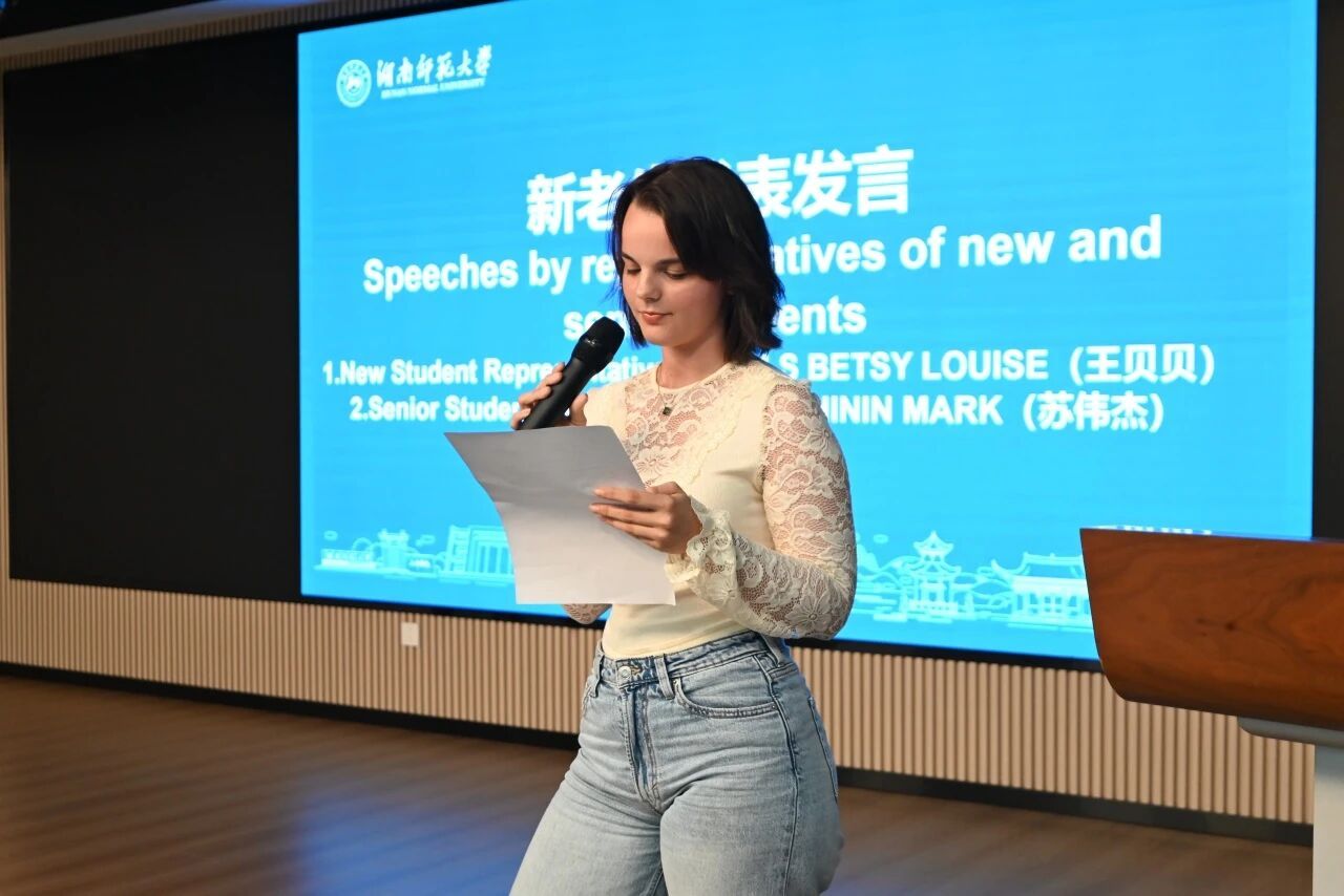 来自英国的新生代表WELLS BETSY LOUISE(王贝贝)则用略显生涩却格外真诚的中文表达了激动之情:“来中国前,我学习了两年中文,但一直没有机会练习口语。现在能来到湖师大,和老师、同学们面对面交流,我特别开心!” 她表示,未来会珍惜在中国的学习机会,努力提升中文水平,深入了解中国文化,成为中英文化交流的小小使者。