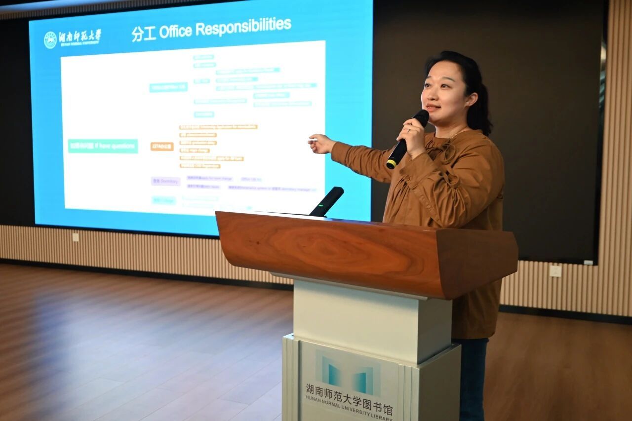 活动最后,湖南师范大学国际学生管理科刘老师为新生们送上“暖心指南”。她详细介绍了学校为国际学生量身打造的品牌活动,同时解读了国际学生学生会、读书会等自治组织的构成与纳新计划,鼓励新生们积极参与、展现自我。此外,管理科郭老师还针对日常考勤、宿舍管理、医疗保障等注意事项进行了温馨提醒,让新生们感受到学校“一站式” 服务的贴心与周到。